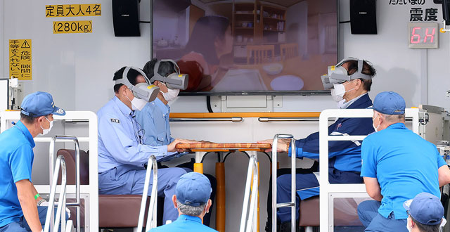 その後首相は、政府調査団としてヘリコプターで千葉市の九都県市合同防災訓練会場へ移動。会場では、救出救助、応急救護訓練を視察し、続いて展示・体験会場でVR起震車体験、災害ボランティア活動を視察し、避難所開設体験を行った。その後、救出救助訓練、火災防御訓練を視察した。ちなみに「九都県市」は、東京都、埼玉県・千葉県・神奈川県・横浜市・川崎市・千葉市・さいたま市・相模原市で構成され、わが国総人口の約4分の1に当たる約3500万人の人口を擁する首都圏。